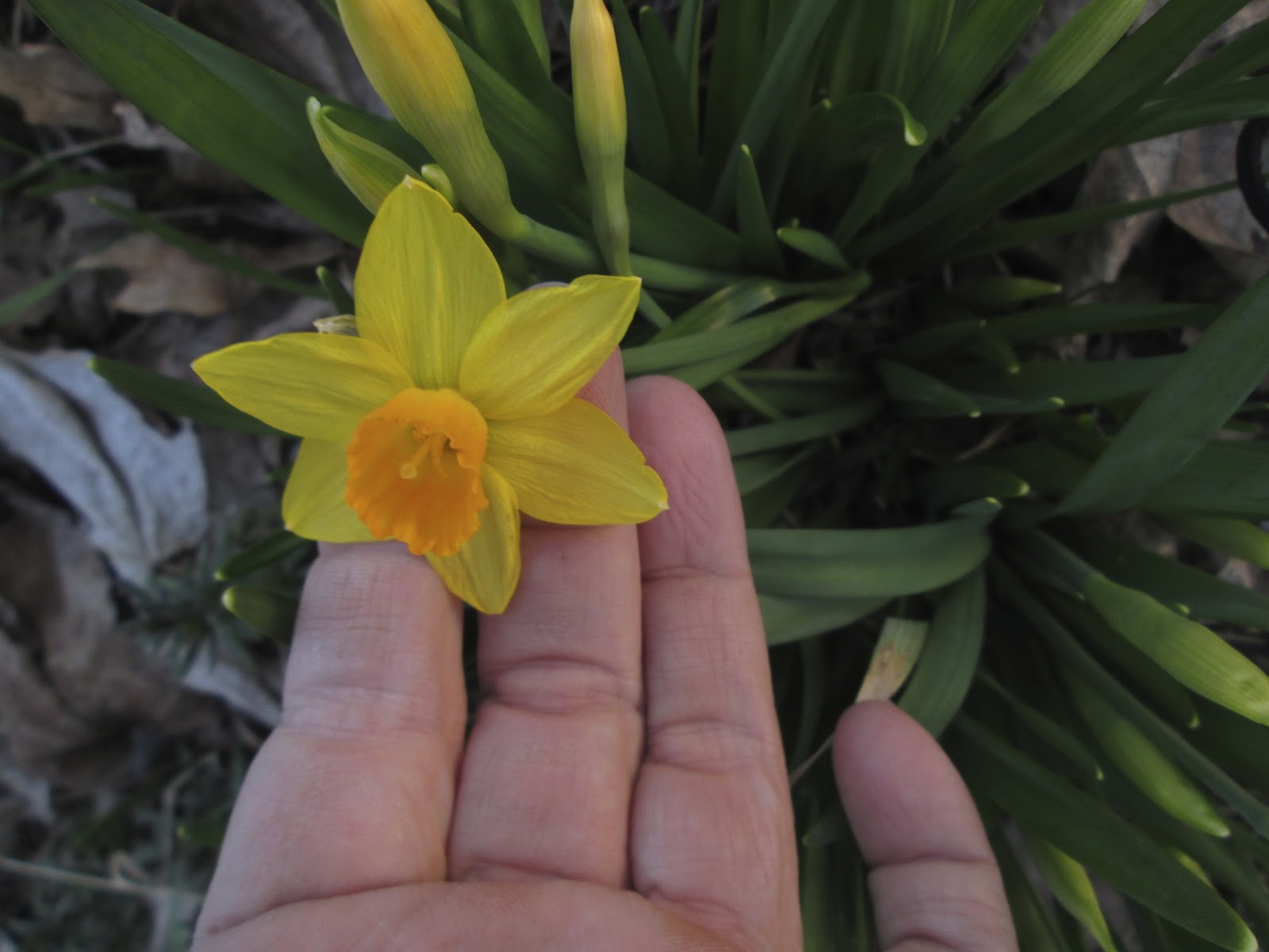 Finally, I have some opened daffodils! The daffs- mini ones, named Tete a Tete- were the first but the white and gold ones are right there with them. I encouraged the last 2 petals to open on the white one. :D